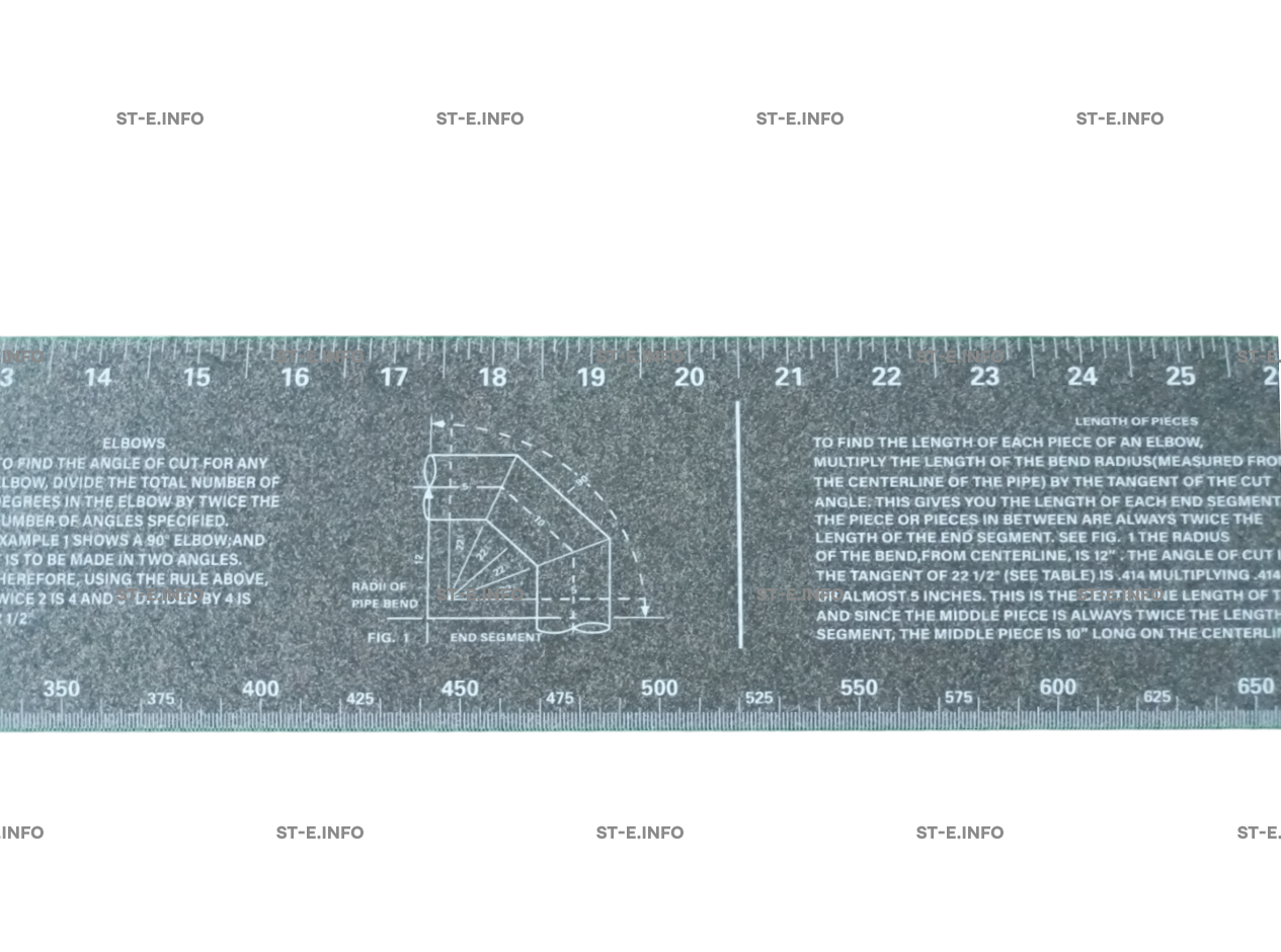 • Длина ленты: 1220 мм, длина печатной части: 1500 ммЕсли длина ленты меньше окружности трубы, её допускается использовать поэтапно как разметочный шаблон. Лента прикладывается к поверхности трубы, по кромке наносится первая линия или контрольные метки, после чего лента смещается дальше по окружности с точным совмещением ранее нанесённых отметок. Таким образом разметка выполняется последовательно по всей окружности трубы. При этом важно обеспечивать плотное прилегание ленты и аккуратное совмещение меток, так как накопление погрешности возможно при неточной фиксации. Максимальная точность достигается при использовании ленты, полностью охватывающей трубу или имеющей достаточный нахлёст.